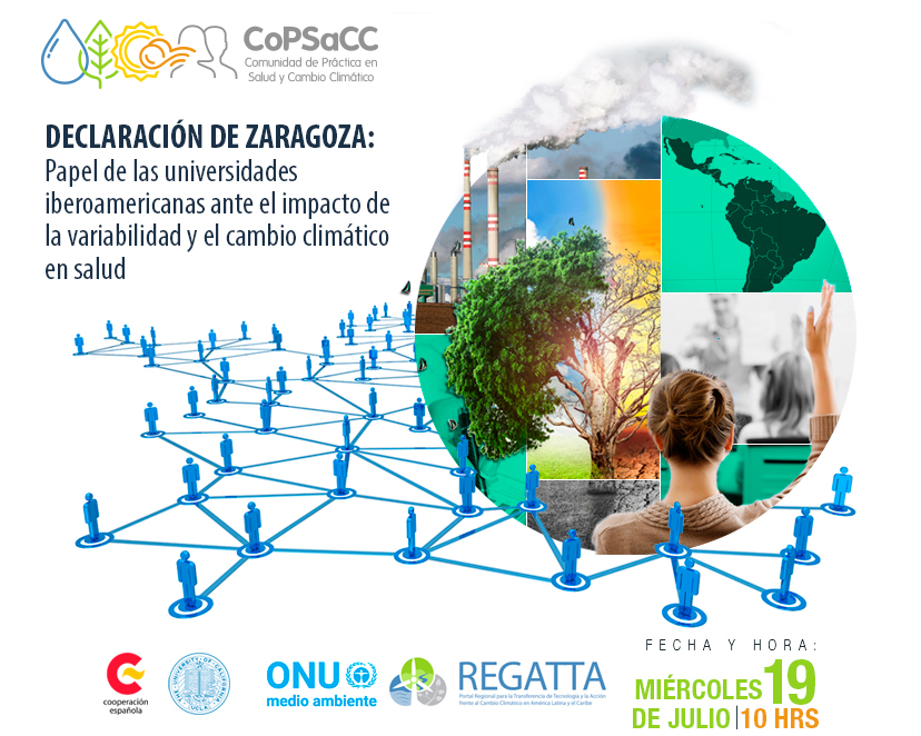 Los Dres. Cristina Tirado (UCLA) y José María Ordóñez (SESA-España) nos hablarán de la Red de Universidades Iberoamericanas sobre Clima y Salud y la Declaración de Zaragoza; en el marco de su lanzamiento, nos compartirán los resultados del inventario realizado entre universidades: líneas de investigación, tipos de formación, elaboración de documentos y proyectos relativos a esta temática.