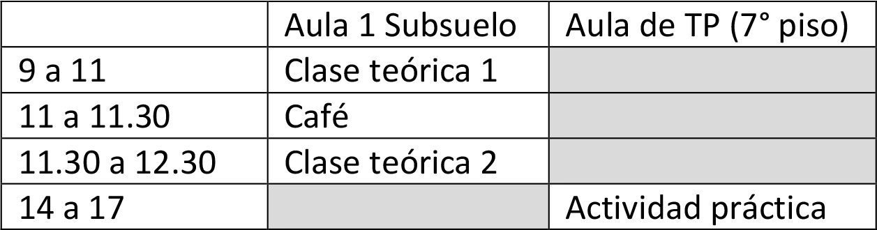| 11.30 a 12.30 | Clase teórica 2 | |